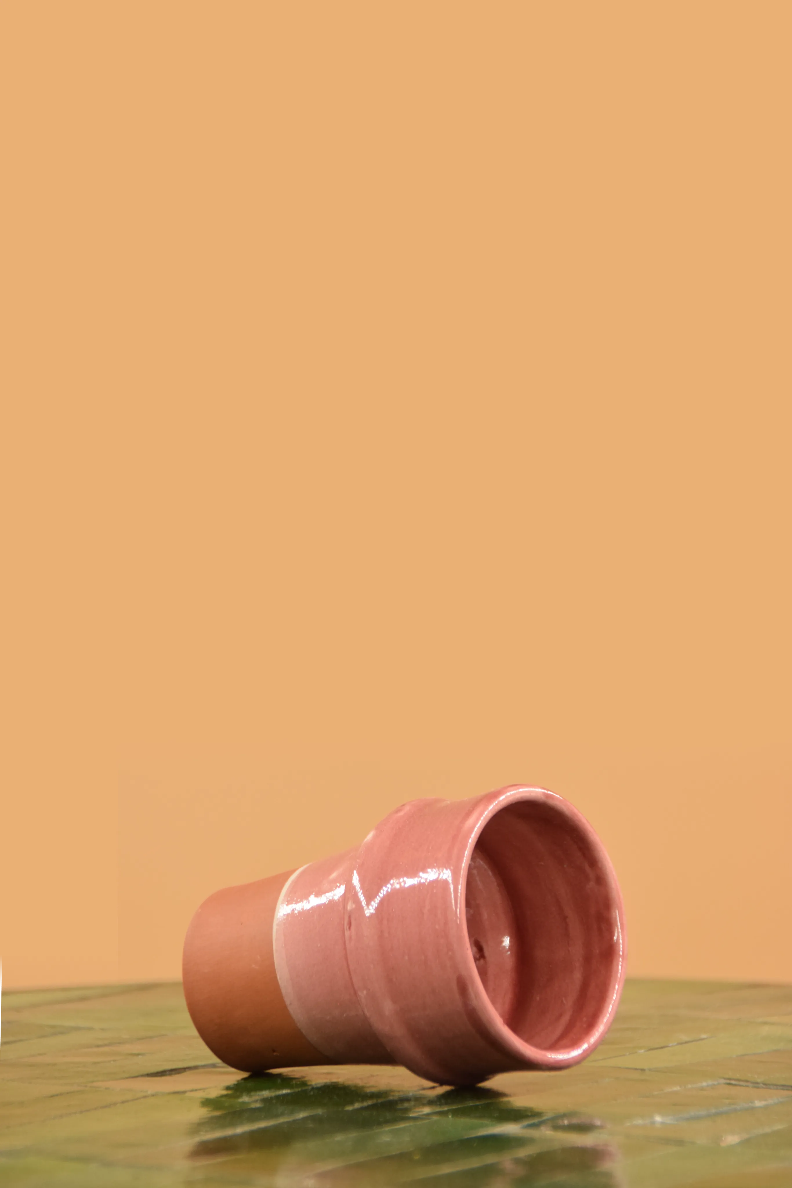 Chaque verre, mug ou tasse est partiellement émaillé, laissant apparaître la texture brute de la céramique mêlée à la douceur de l’émail.