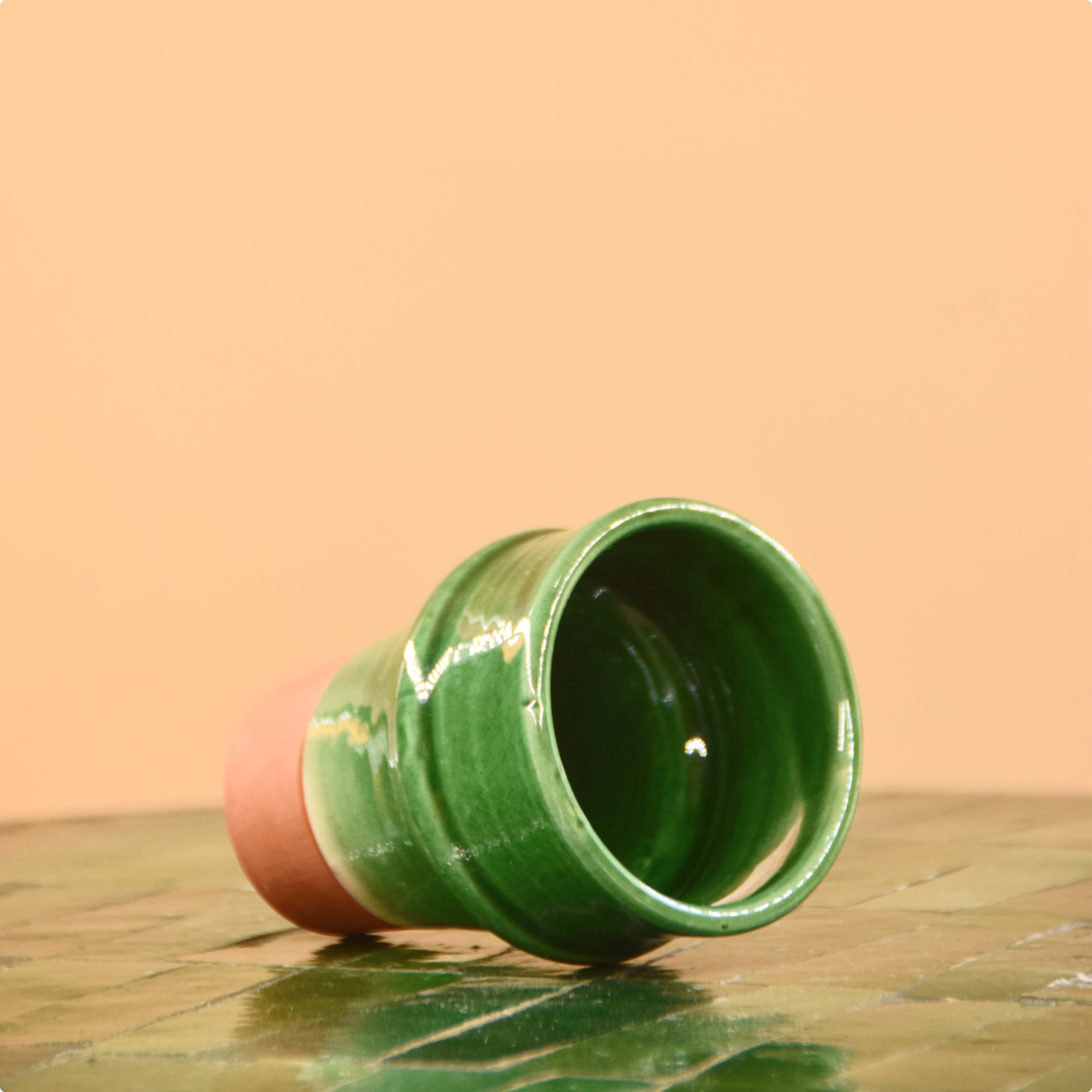 Chaque verre, mug ou tasse est partiellement émaillé, laissant apparaître la texture brute de la céramique mêlée à la douceur de l’émail.